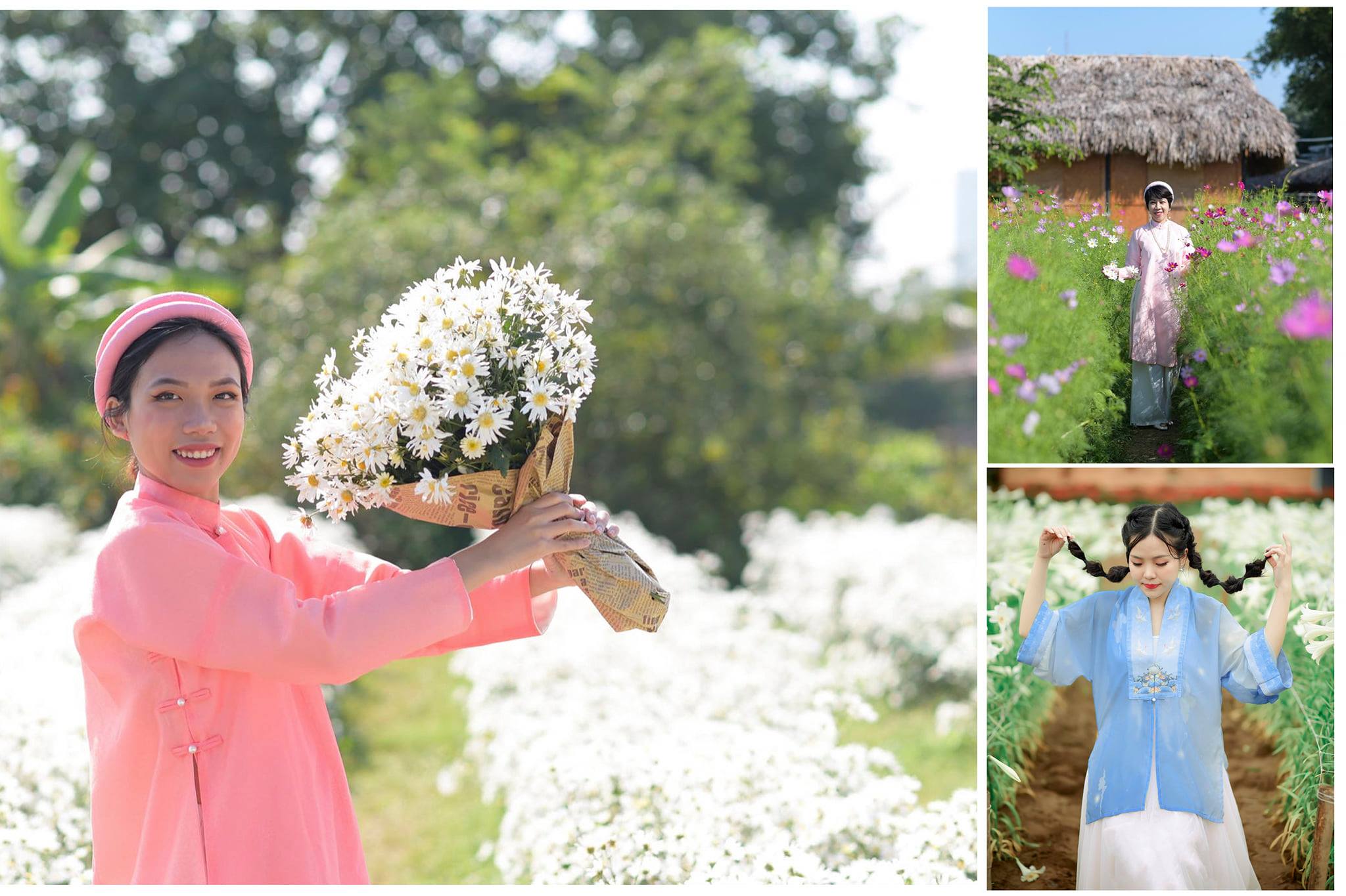 Nếu chụp áo Tấc, Ngũ Thân Tay Chẽn, Viên Lĩnh, Giao Lĩnh, … nhất là các đồ cách tân thì concept tại vườn hoa cũng là một concept mọi người có thể tham khảo. Mình có thể liệt kê một số vườn hoa nổi tiếng như: Thảo nguyên hoa Long Biên, Vườn hoa Phương Linh, Làng hoa Tây Tựu, Thung lũng hoa Hồ Tây, Vườn hoa Bách Nhật, Vườn hoa bãi đá sông Hồng…